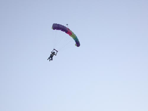 Skydivers landed on a runway of flame.